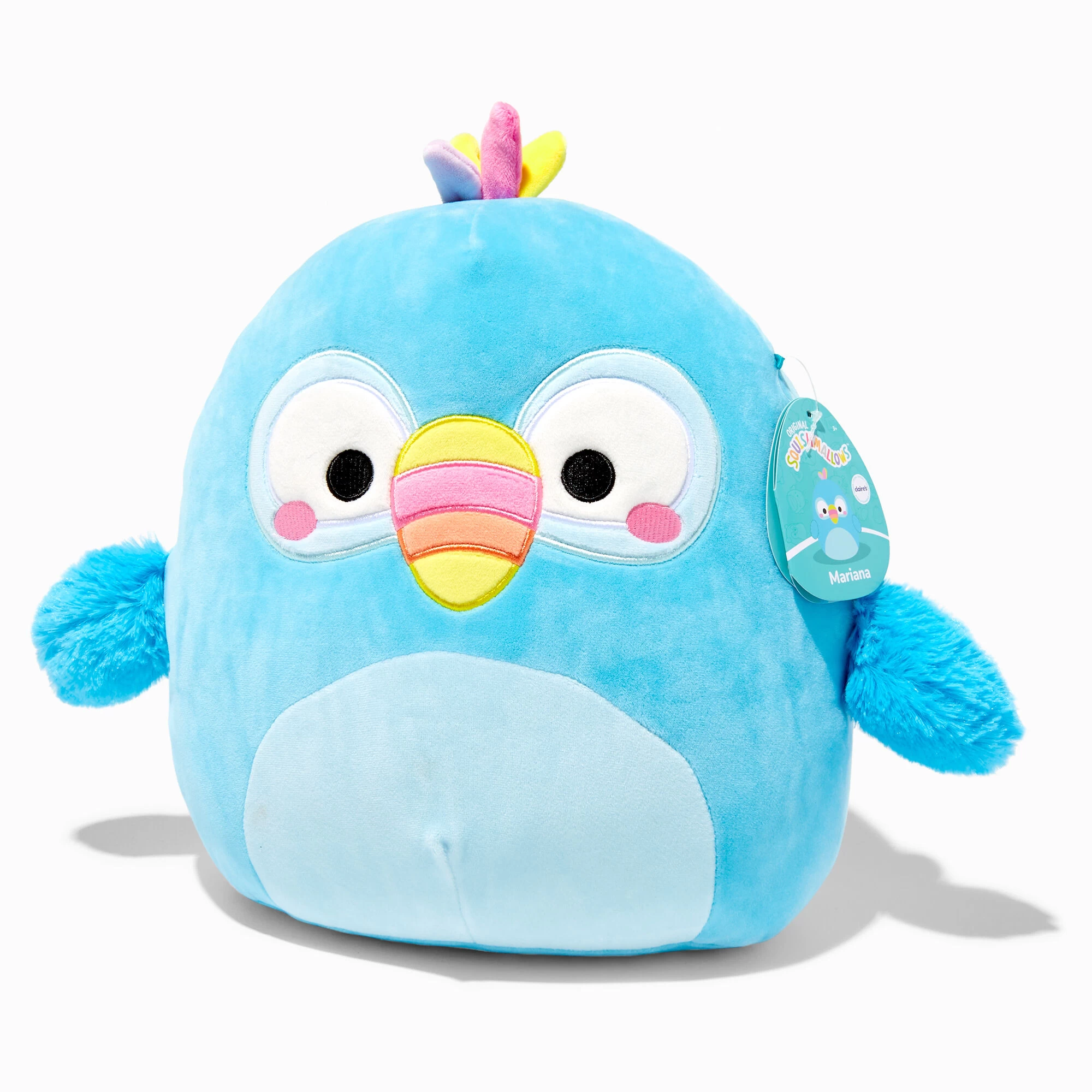 Blue as can be and perfect for squishing and hugging all day long, this toucan features a colorful beak and blushin’ cheeks.